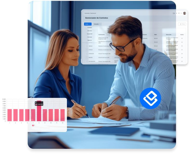 Monitore o status dos contratos e gere relatórios detalhados para tomar decisões mais informadas.